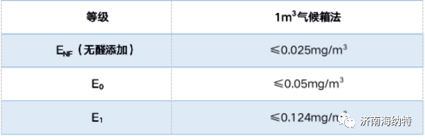 《人造板及其制品甲醛釋放量分級》規(guī)定了室內(nèi)用人造板及其制品甲醛釋放量分級要求、試驗方法以及判定規(guī)則。該標(biāo)準(zhǔn)將室內(nèi)用人造板及其制品的甲醛釋放量按照限量值分為3個等級,即 E1級(≤0.124mg/m3)、E0級(≤0.050mg/m3)和ENF級(≤0.025mg/m3)。